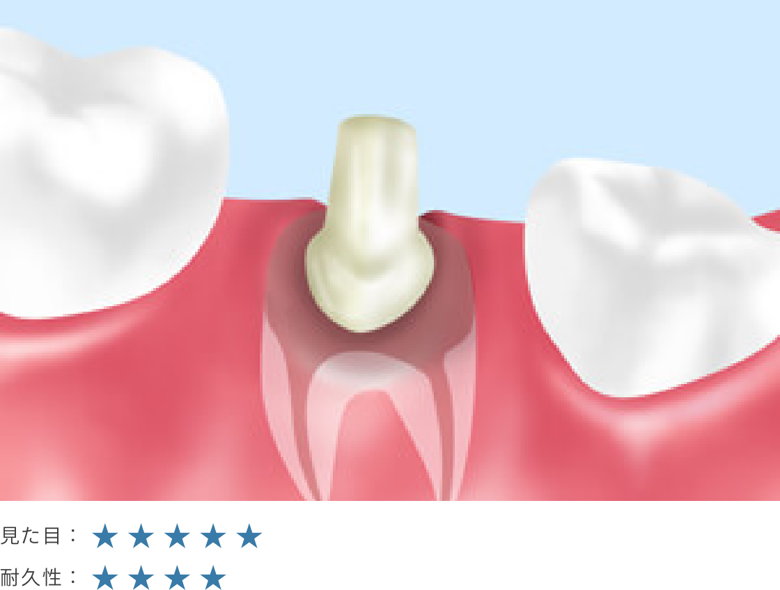 被せ物を装着する土台(コア)を、グラスファイバーを芯にしてつくります。金属コアとは異なり、光を透過するので被せ物の透明感を損ないません。金属アレルギーの心配がなく、歯根の破折のリスクを抑えられます。