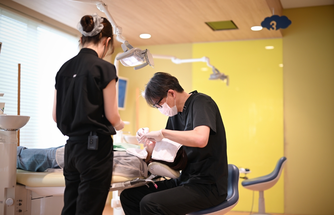 お子様の歯を健康に保つために大切なのは予防です。歯の再石灰化を促す効果のあるフッ素を塗布するなどして、お子様の成長段階に合わせた方法で健やかな歯を育みます。当院のスタッフはみんな子どもが大好きです。お子様が怖がらないように決して無理強いはせず、やさしく接しながら診療にあたります。歯医者が苦手なお子様も、安心してお連れください。
